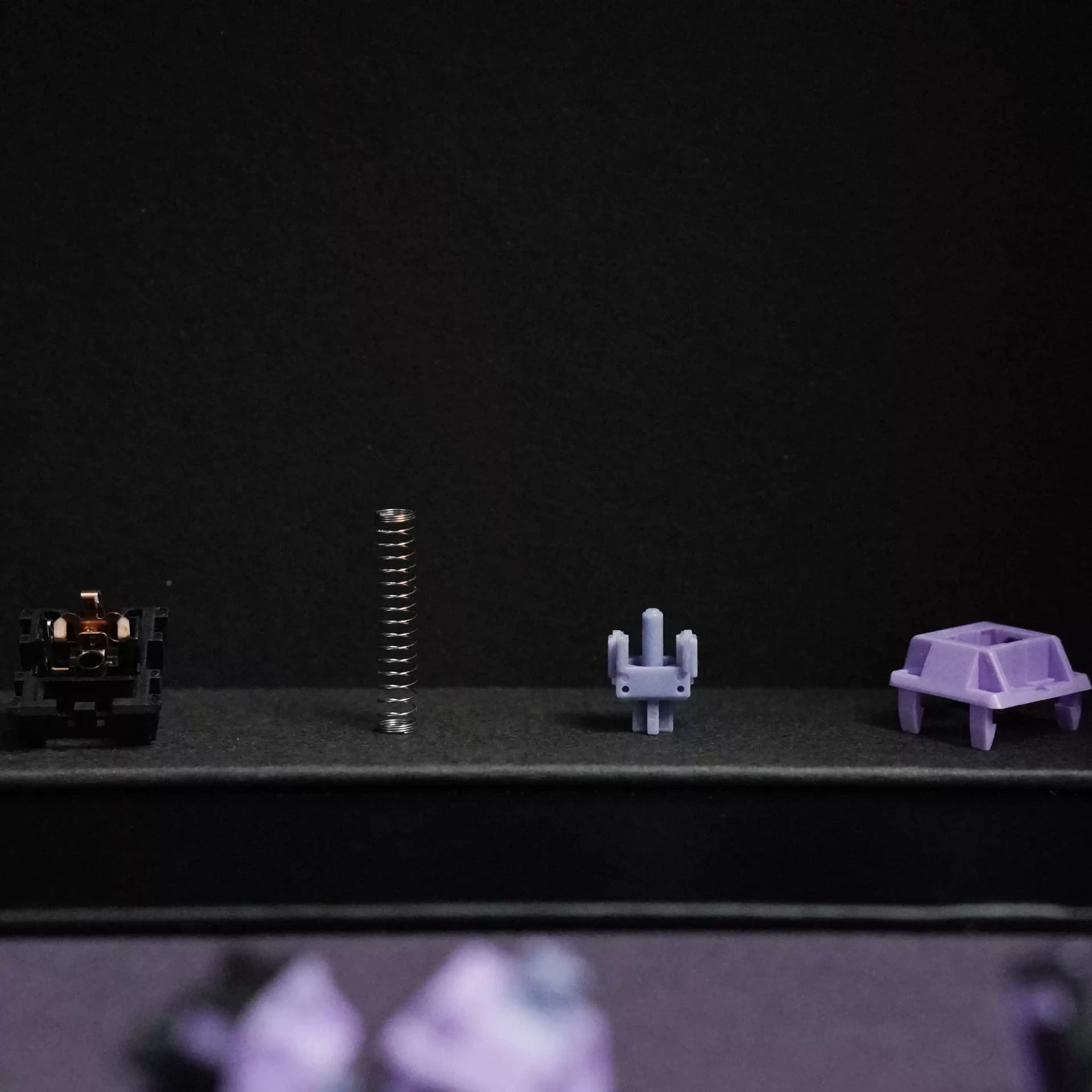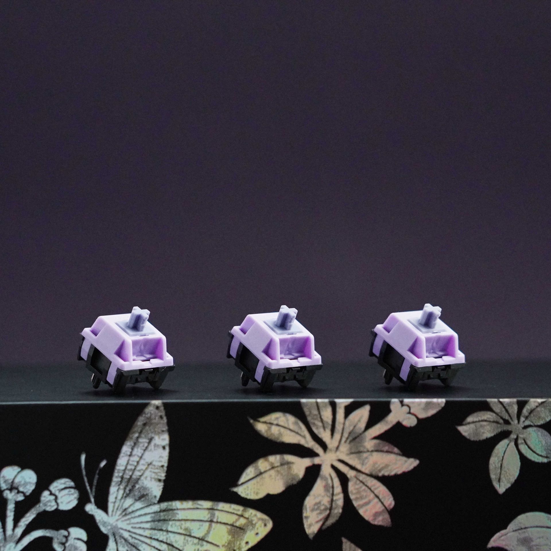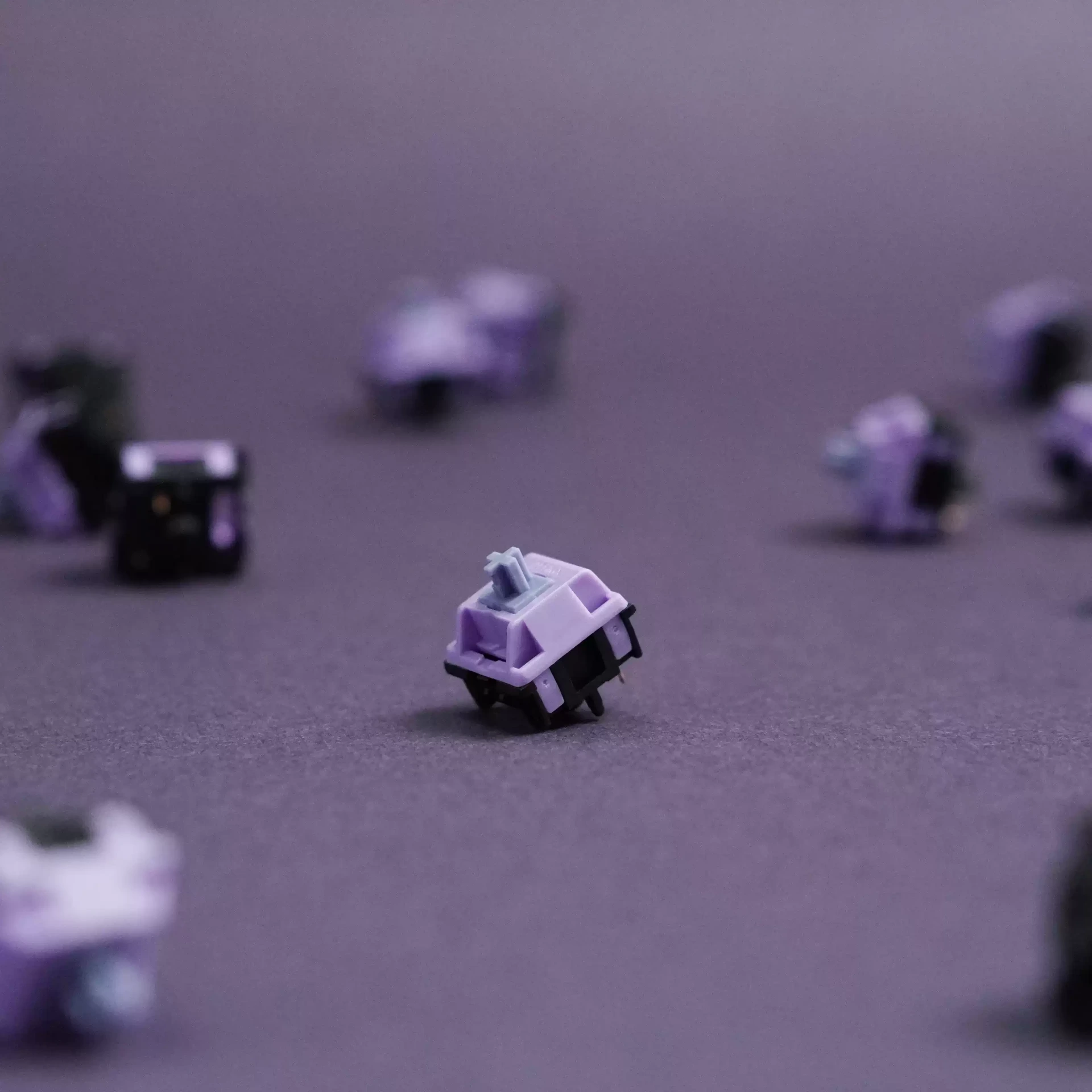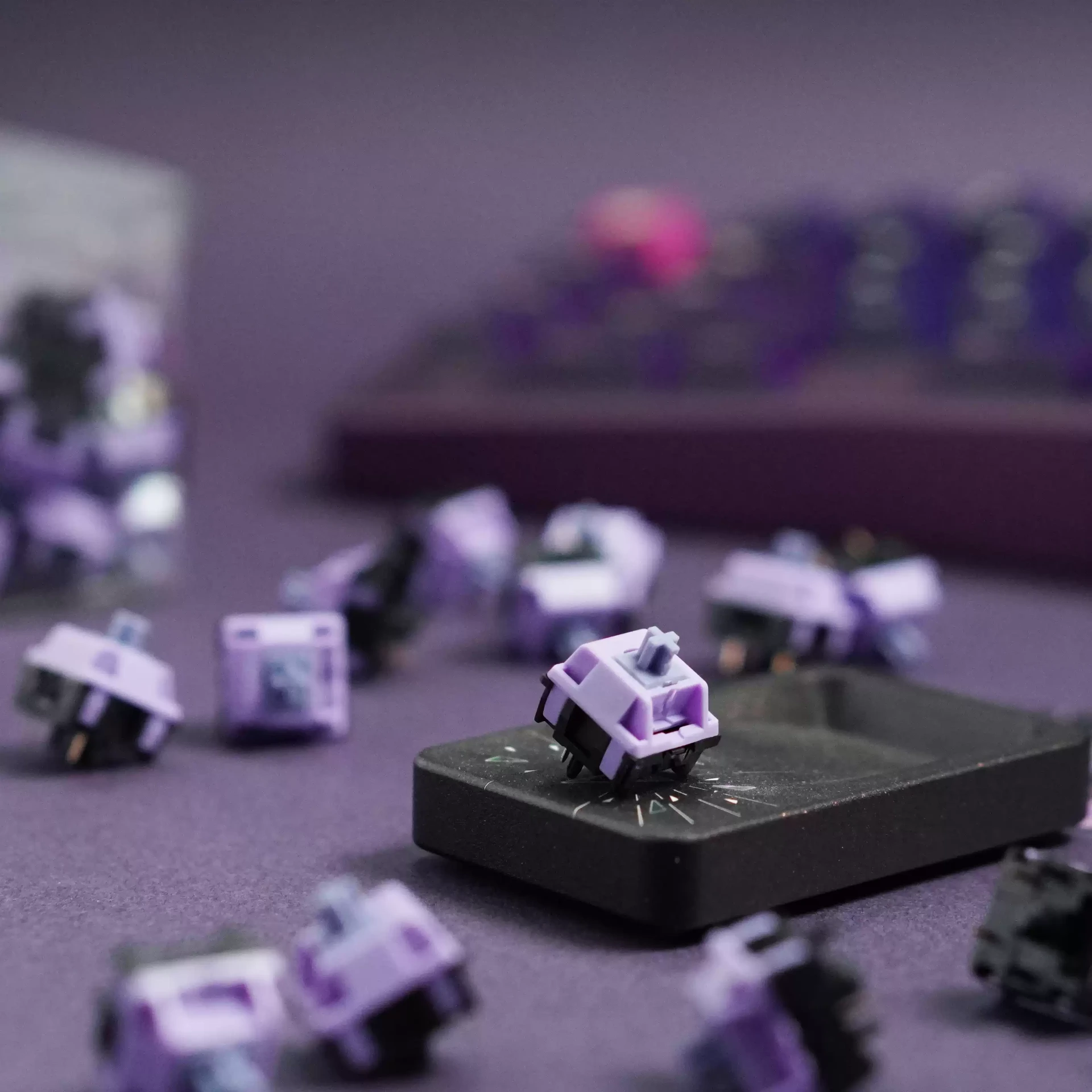 Blackberry Linear mają charakterystyczny, głęboki fioletowo-lawendowy design z ciemniejszą bazą, który od razu kojarzy się z „berry / grape” estetyką. Wyglądają bardzo spójnie i elegancko, szczególnie w połączeniu z ciemnymi keycapami i nocnymi, kontrastowymi buildami.
